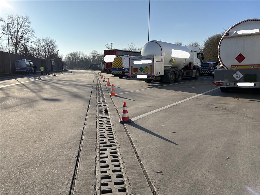 Kontrollwoche "Truck & Bus": Mehrere Verstöße bei Verkehrskontrolle A45, Parkplatz "Pfingstweide", Polizeibeamte der Verkehrsdirektion haben am Dienstag auf dem Parkplatz "Pfingstweide" gemeinsam mit Bediensteten des Bundesamtes für Logistik und Mobilität (BALM) den gewerblichen Güterverkehr näher unter die Lupe genommen.